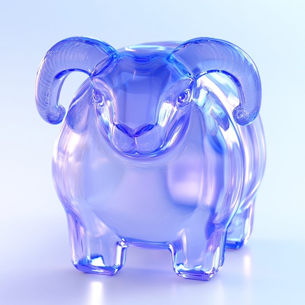 3D Rendered Glass Sheep Figurine with Soft Lighting