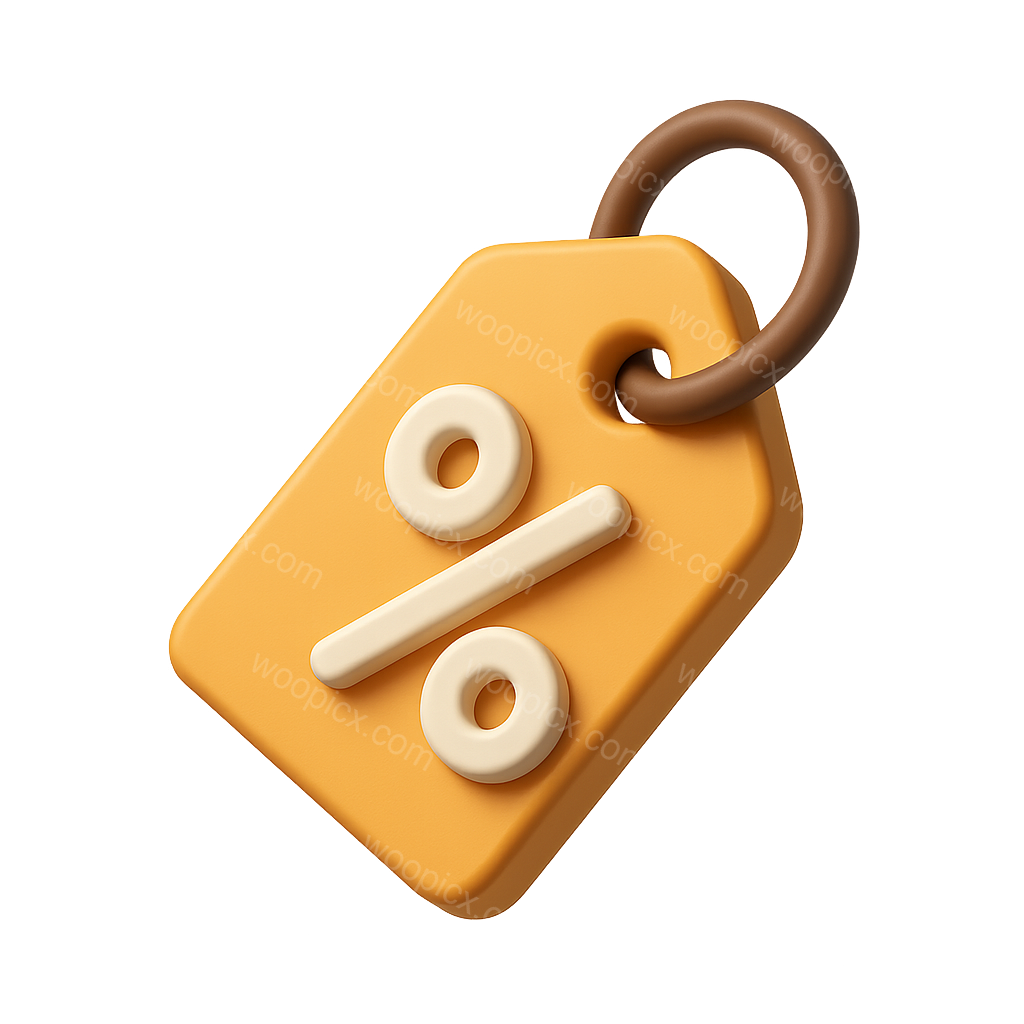 /Premium/Collection: /by davooda/Type: PNG/A three-dimensional price tag icon featuring a percentage symbol, designed in an isometric view with a transparent background. The tag is orange with a brown loop, showcasing a modern and volumetric style.