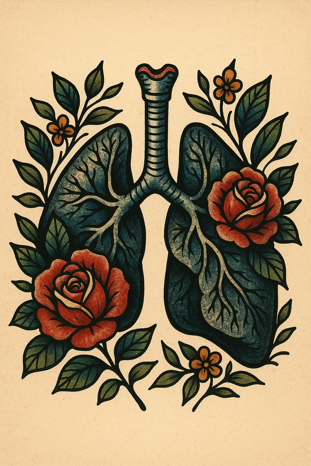 Artistic representation of lungs with floral elements
