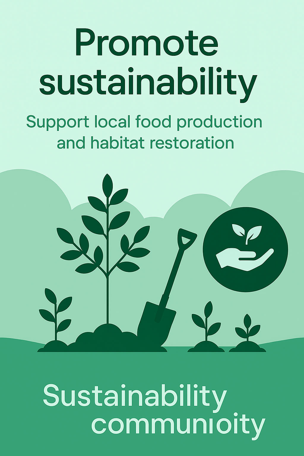/Collection: /by davooda/Type: PNG/A visually appealing graphic focused on promoting sustainability, featuring green design elements and icons representing local food production and habitat restoration, ideal for environmental campaigns.