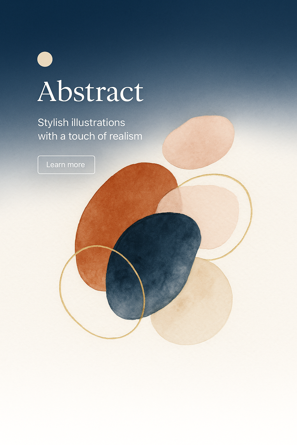 /Collection: /by davooda/Type: PNG/An elegant abstract illustration featuring terracotta, navy blue, and blush colors. This stylish design incorporates gold elements on a soft white background, ideal for modern branding.