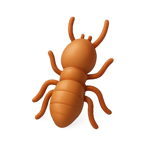A playful 3D rendering of an ant, designed with a smooth and simplistic aesthetic, ideal for digital communication and casual contexts.