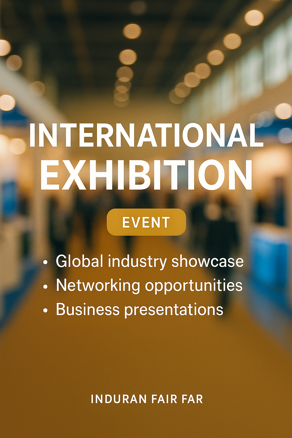 /Collection: /by davooda/Type: PNG/Professional promotional banner designed for an international exhibition, featuring key event highlights with modern typography and a business-oriented theme, suitable for networking and industry showcases.