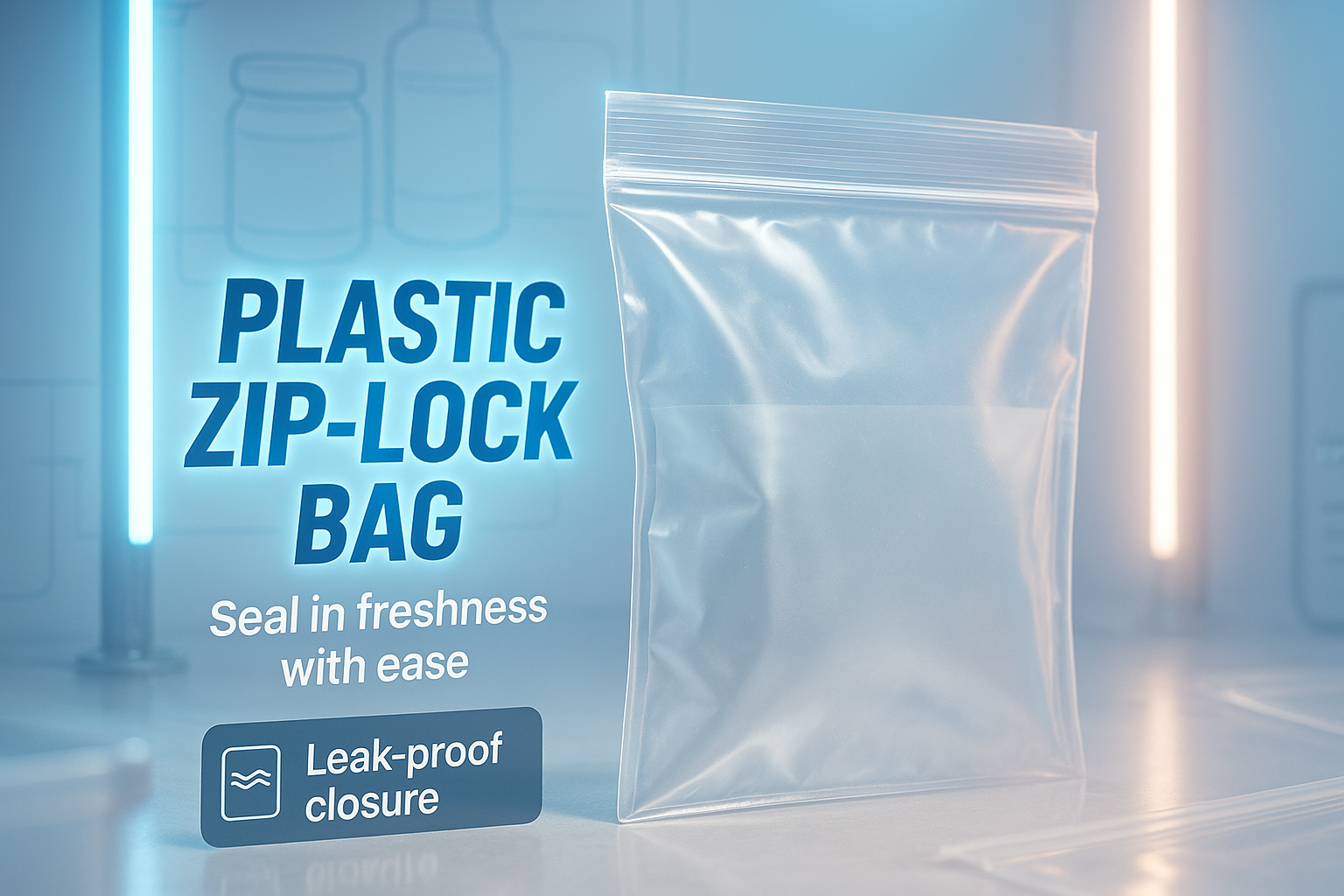 Product image of a transparent plastic zip-lock bag featuring a modern design with a focus on functionality and freshness. Ideal for e-commerce and product marketing.