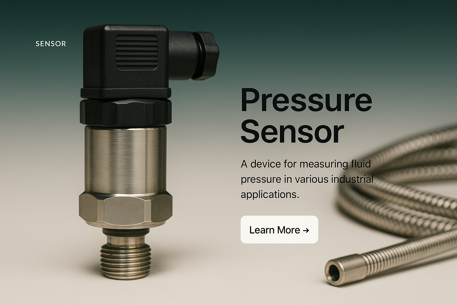 A modern pressure sensor illustration showcasing its structure and functionality, accompanied by a clean gradient background and clear call-to-action.
