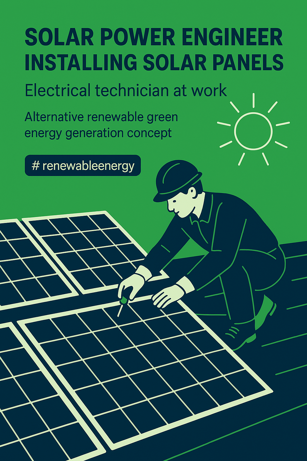 Illustration of Solar Power Engineer Installing Solar Panels