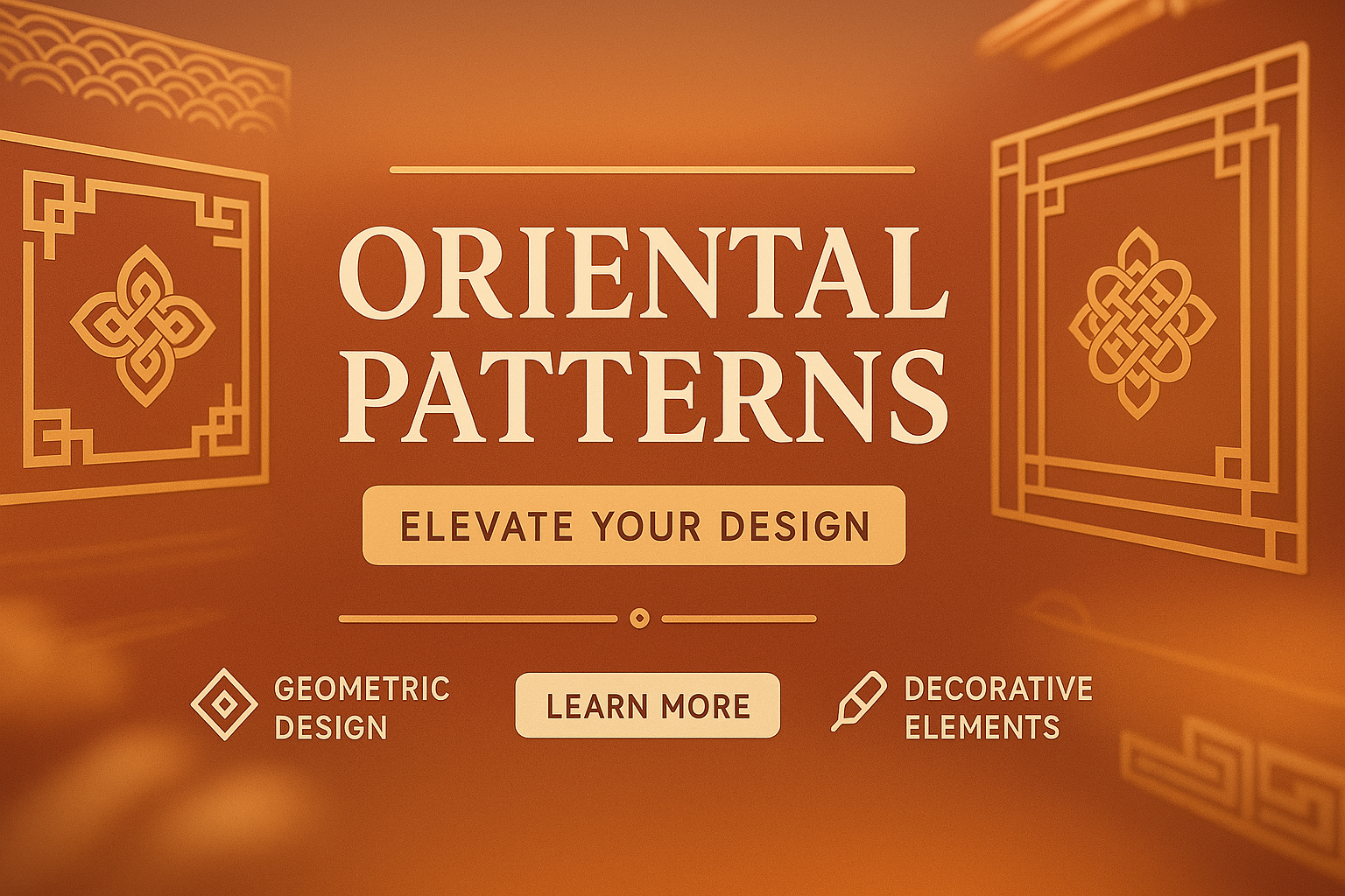 Engaging promotional graphic showcasing oriental patterns with a warm color palette, ideal for design inspiration and marketing materials.