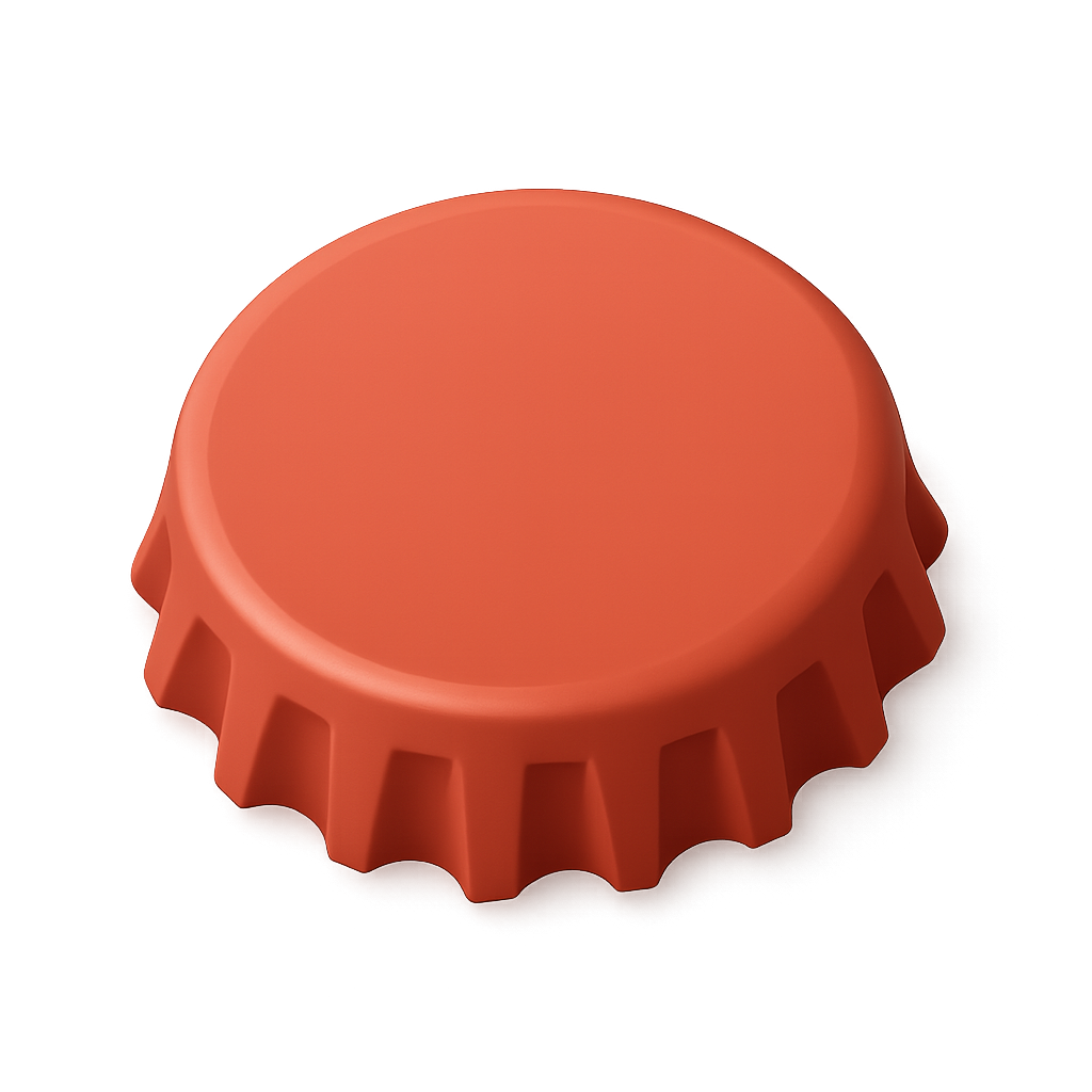 /Collection: /by davooda/Type: PNG/This image features a stylized 3D icon of a bottle cap rendered in a three-quarter view. The cap is a vibrant red color with a smooth finish, showcasing its ridged edges and volumetric depth against a soft gradient background.