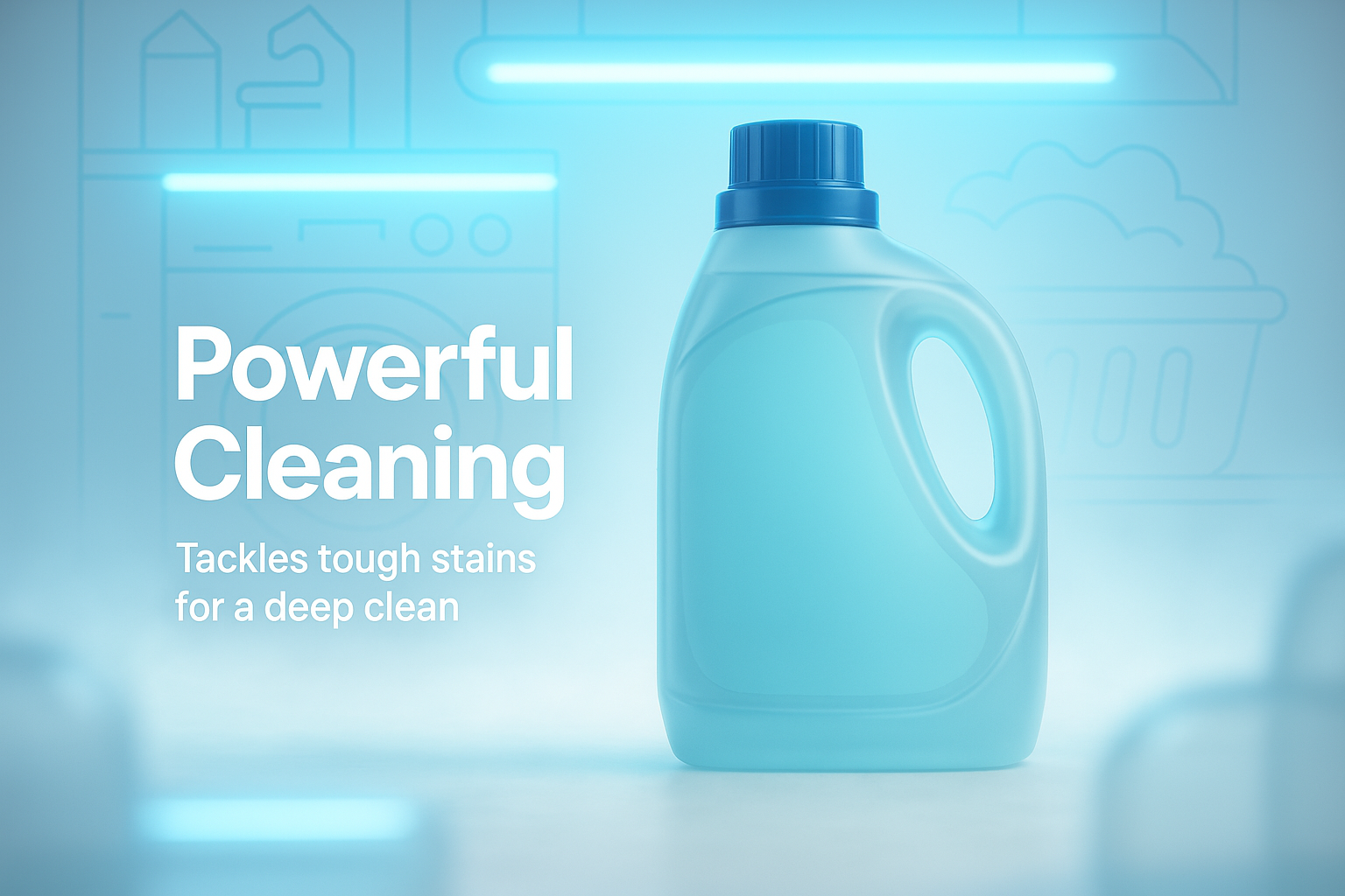 /Collection: /by davooda/Type: PNG/A visually appealing product showcase featuring a blue cleaning solution bottle, designed with a modern aesthetic and suitable for marketing in e-commerce and advertisements.