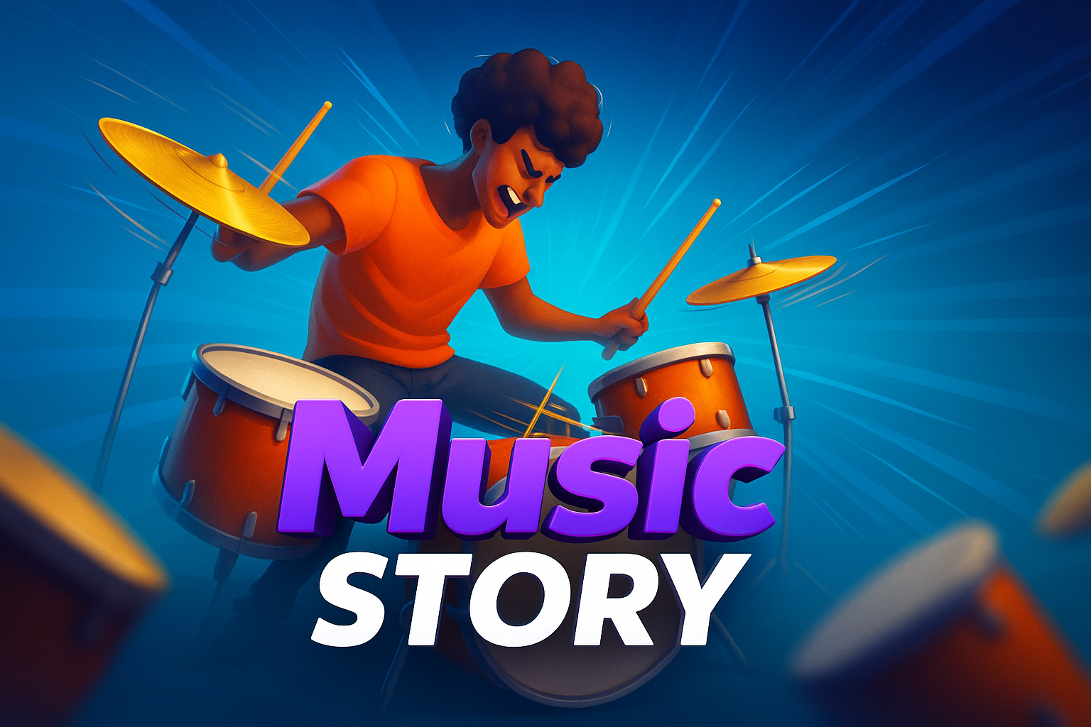 /Collection: /by davooda/Type: PNG/An energetic illustration of a drummer passionately playing a vibrant drum set. The background features dynamic rays of color, enhancing the lively atmosphere of music.