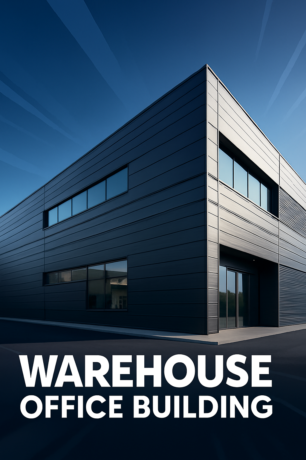Sleek Steel Exterior of Modern Warehouse Office Building