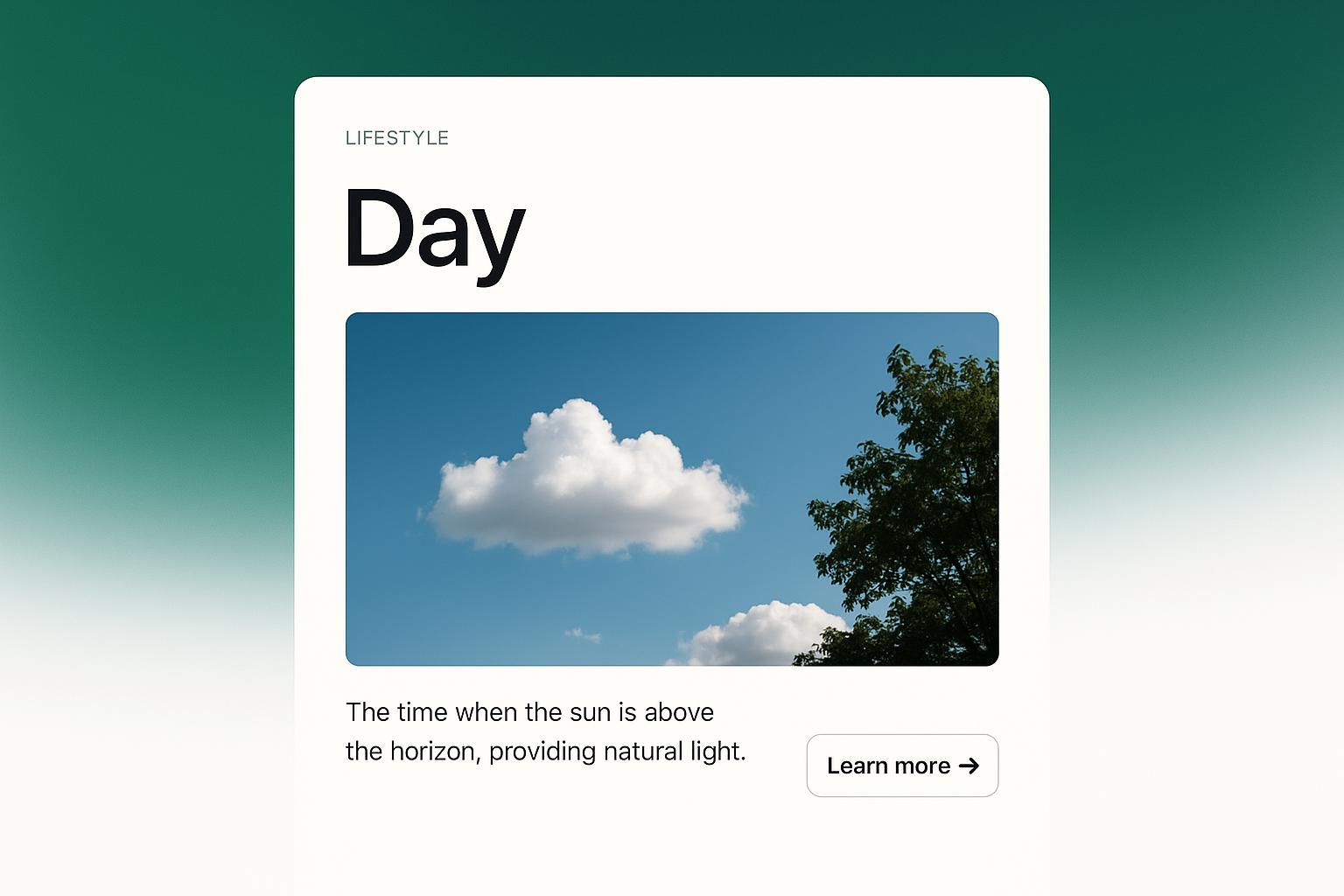 A modern web design displaying a daytime theme, featuring a gradient background transitioning from dark to white, small text elements, and an action button.