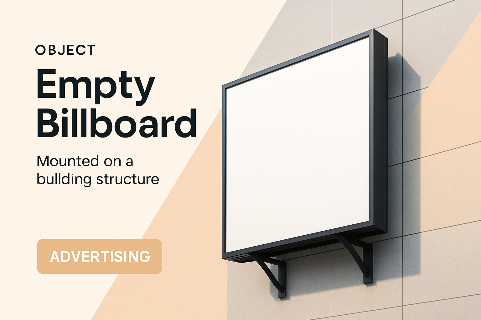 /Collection: /by davooda/Type: PNG/A clean, modern billboard mounted on a building, featuring a blank white surface. The background is divided into light color fields, enhancing visual dynamism. Typography includes a bold headline and supporting text.