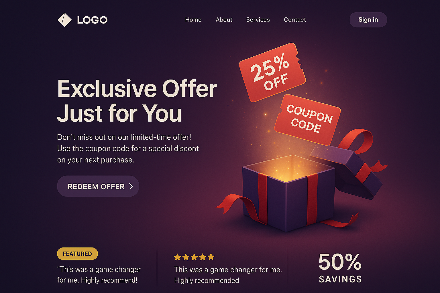 Landing Page Design Featuring Promotional Offer and Customer Testimonials
