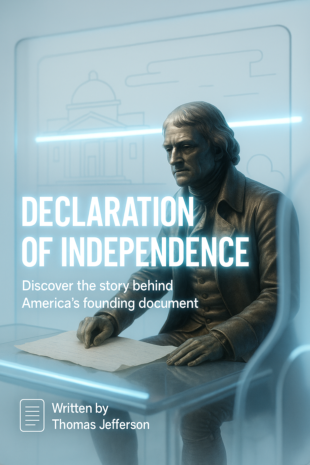 /Collection: /by davooda/Type: PNG/A modern digital artwork depicting a statue of Thomas Jefferson with a stylized background, representing the Declaration of Independence. Ideal for educational content or historical presentations.