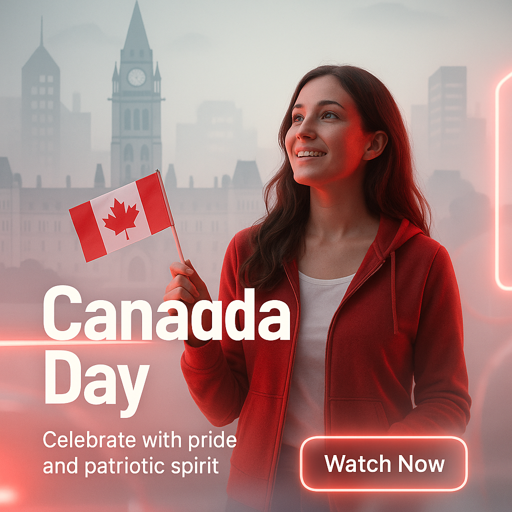 Canada Day Celebration Promotional Image Featuring Young Woman