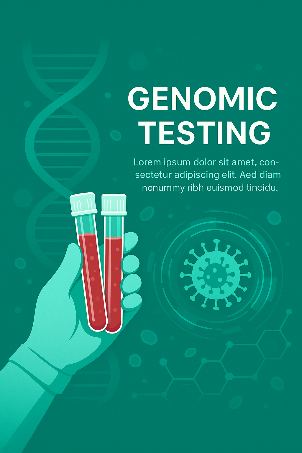 Modern digital illustration showcasing genomic testing with test tubes and a virus symbol, ideal for healthcare marketing and educational content.