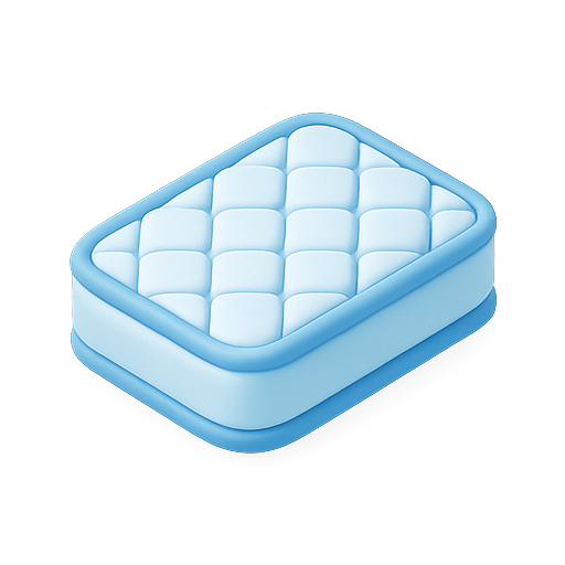 A modern graphic representation of a mattress featuring a soft blue color scheme and quilted texture, suitable for promoting bedding products or home decor.