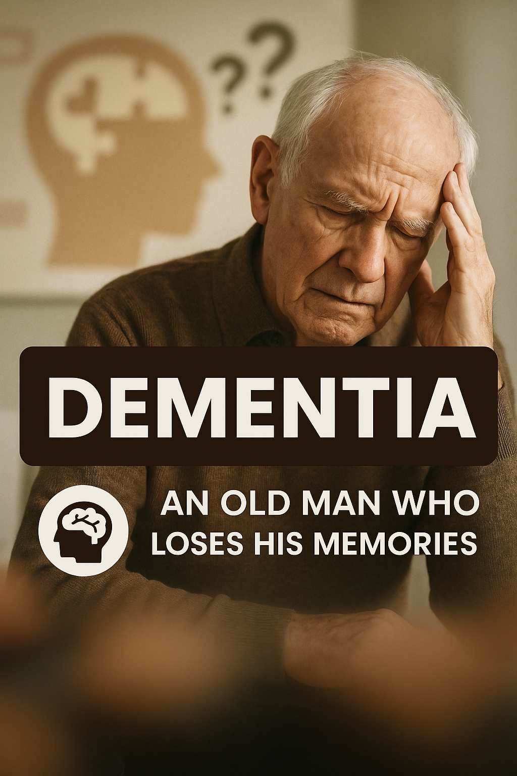 A poignant visual representation focusing on dementia, featuring an elderly man in distress. Ideal for educational campaigns and mental health awareness.