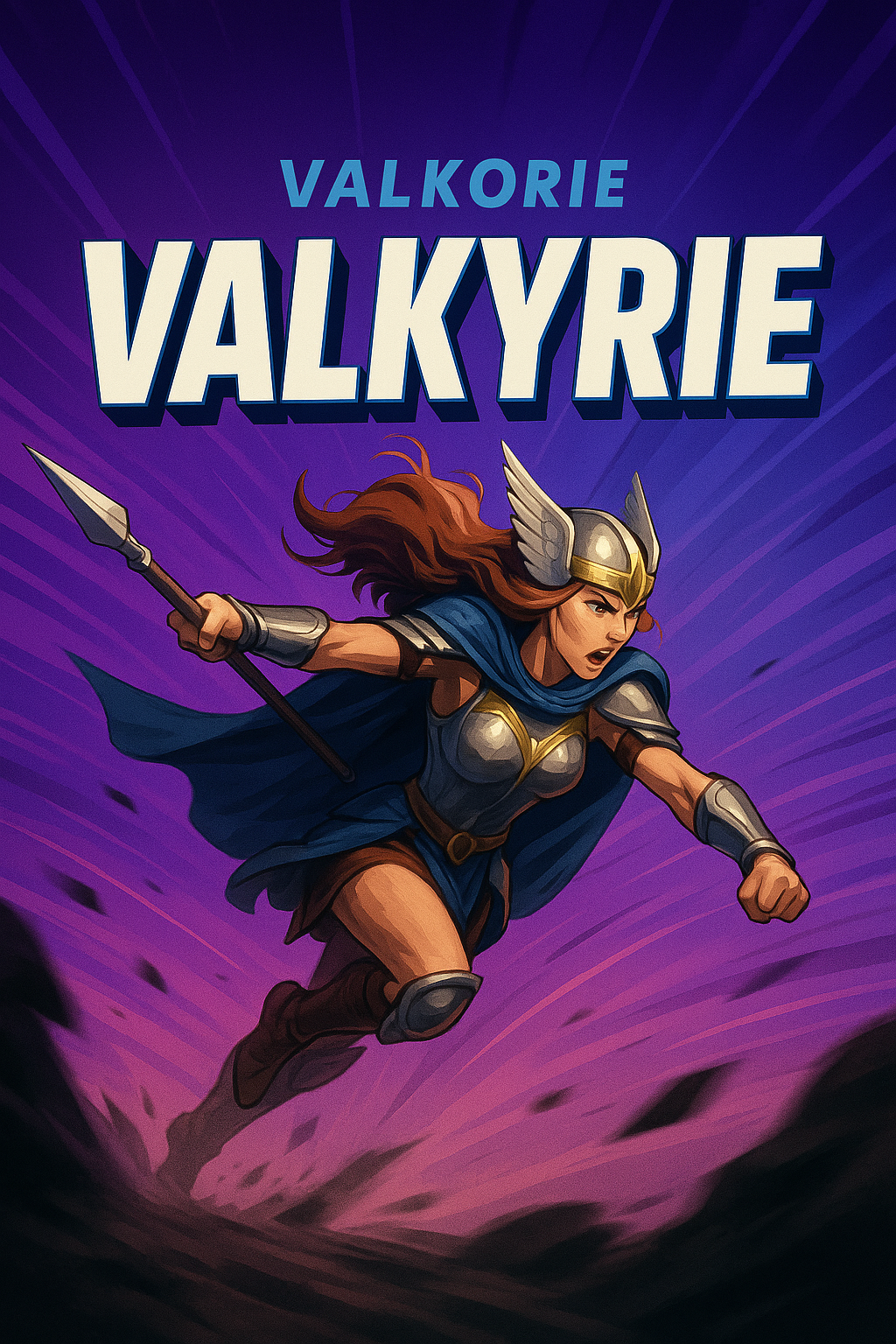 Dynamic illustration of Valkyrie in action with a heroic pose