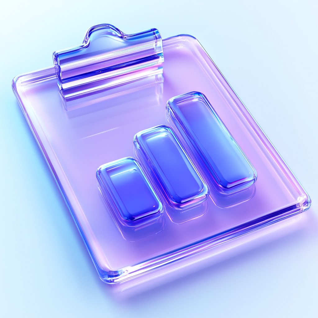 A sleek, modern clipboard graphic featuring translucent bars representing data in a vibrant gradient. Ideal for presentations or reports in digital formats.