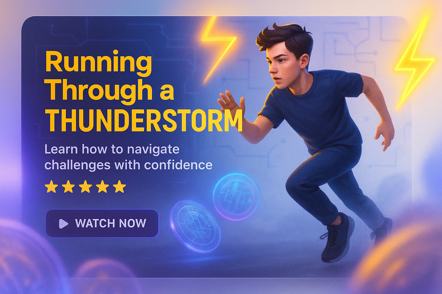 /Collection: /by davooda/Type: PNG/Engaging digital illustration depicting a young person running through a storm, symbolizing resilience. Ideal for promotional content aimed at youth development.