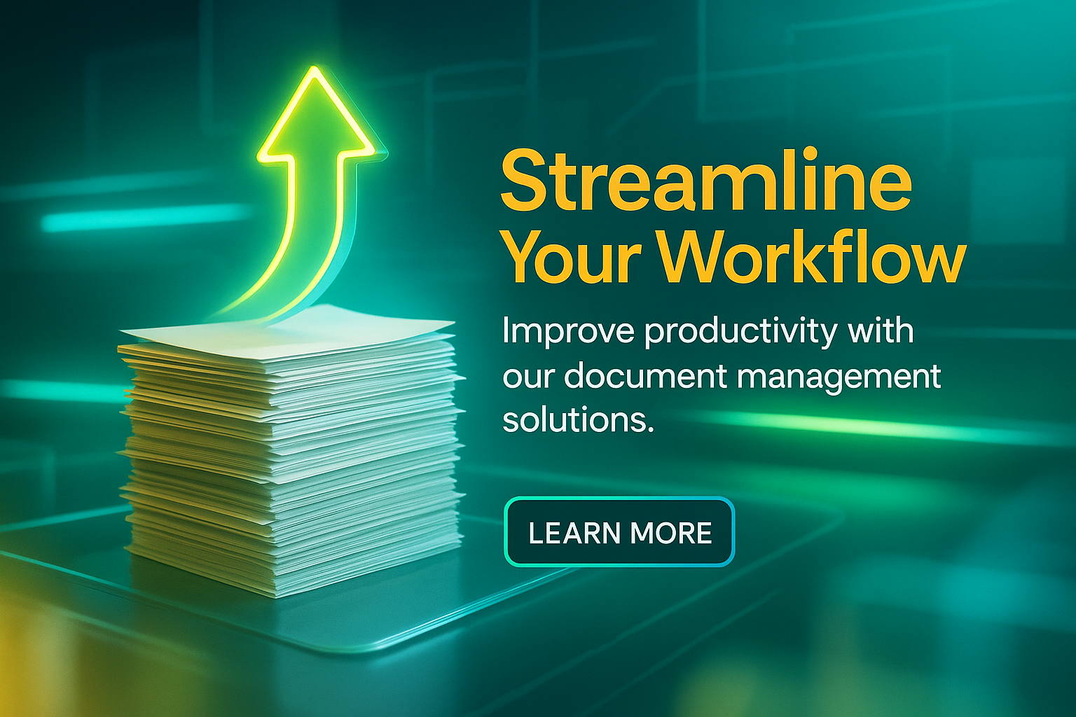 /Collection: /by davooda/Type: PNG/Engaging promotional graphic highlighting workflow improvement through document management solutions, featuring a modern design with a vibrant color palette suitable for digital marketing.