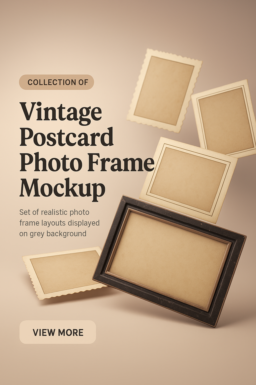 Vintage Postcard Photo Frame Mockup Collection on Neutral Background