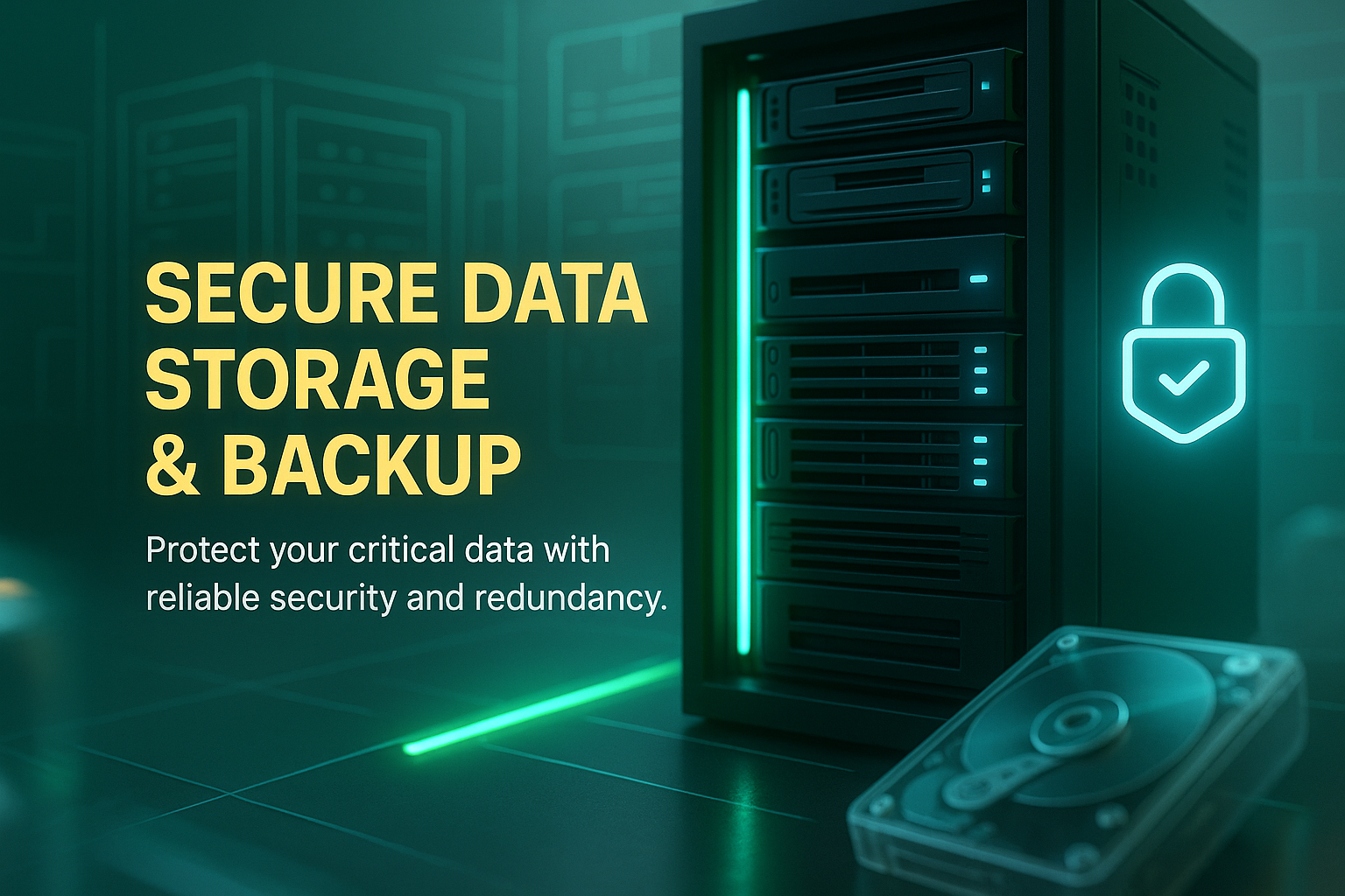 /Collection: /by davooda/Type: PNG/A visually striking graphic illustrating secure data storage and backup with a focus on technology and security. Ideal for tech-related marketing materials.