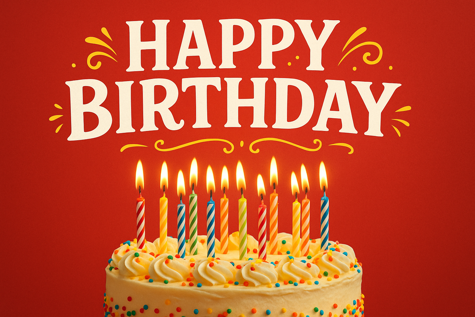 Festive Birthday Celebration Graphic Featuring Cake and Candles