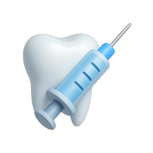 Illustrative icon featuring a tooth and a syringe, symbolizing dental procedures or care. Ideal for healthcare-related content and educational materials.