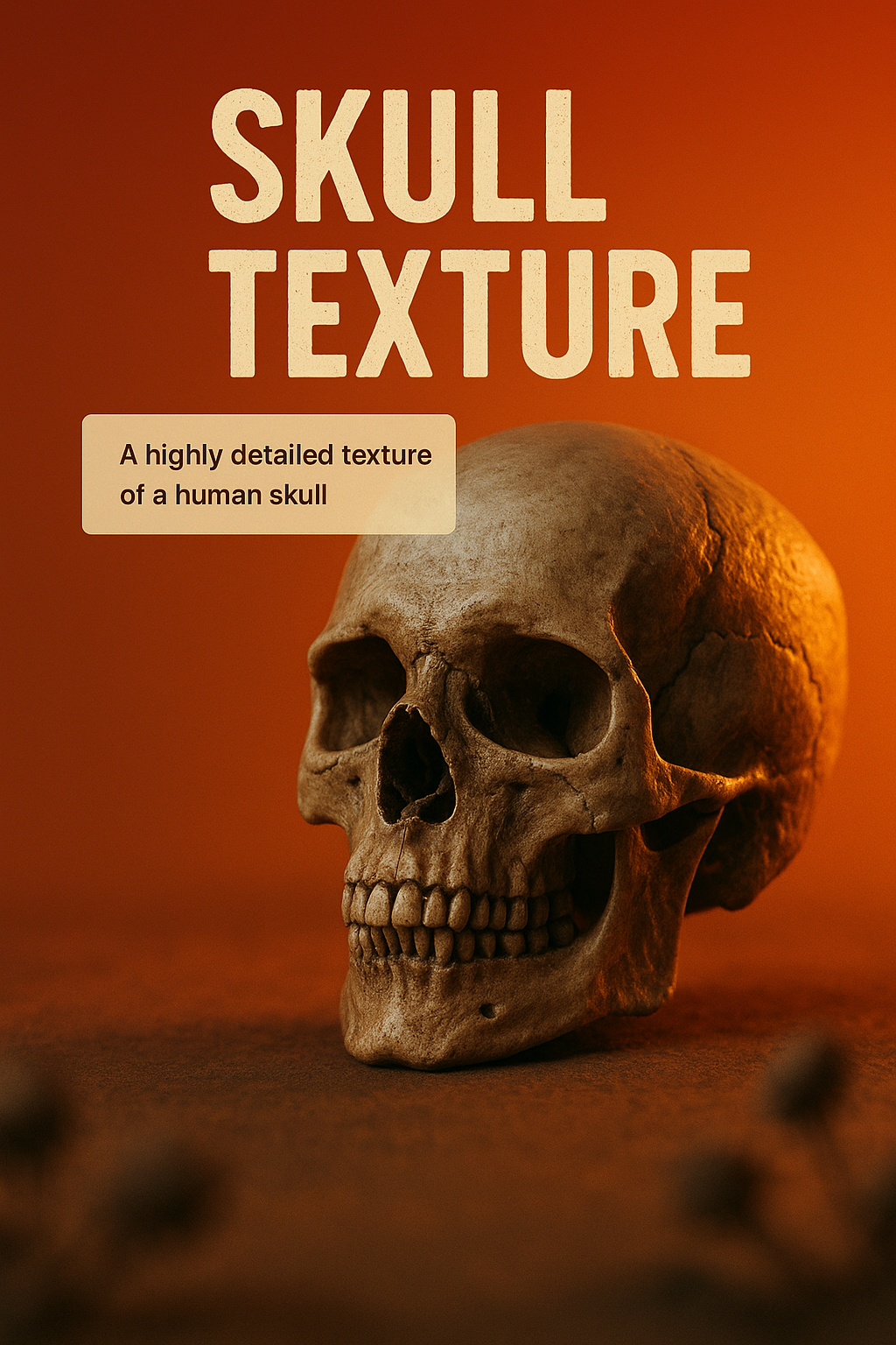This is a close-up image of a human skull, showcasing intricate textures. It has a warm color palette and a soft-focus background, ideal for educational or artistic use.