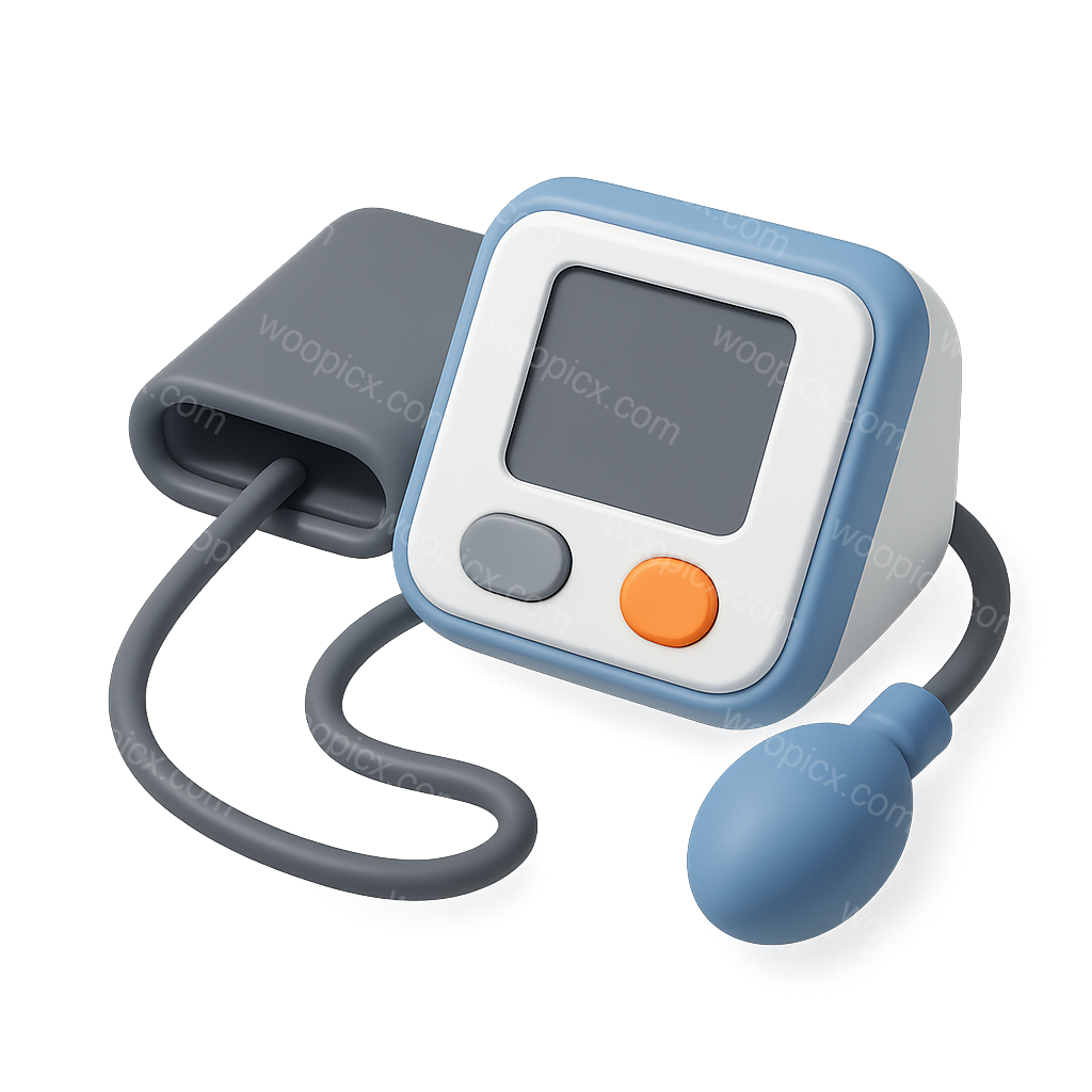 /Premium/Collection: /by davooda/Type: PNG/A modern 3D representation of a blood pressure monitor, featuring a sleek design with a display, buttons, and a bulb. The icon is shown in a three-quarter view against a subtle background.