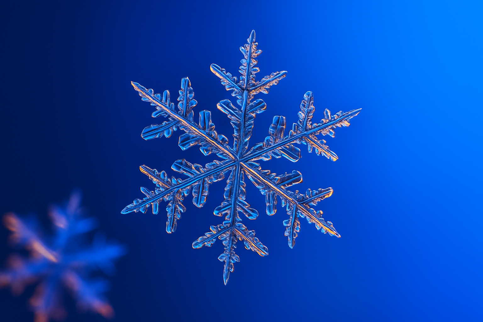 /Collection: /by davooda/Type: PNG/A stunning macro photograph showcasing various snowflakes suspended in mid-air against a vibrant blue background. The snowflakes exhibit intricate details and textures, illuminated from behind for a striking visual effect.