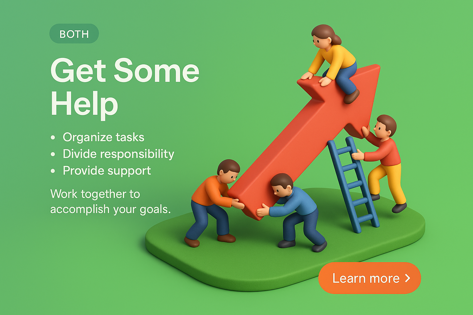 /Collection: /by davooda/Type: PNG/A vibrant 3D illustration showing miniature figures working together to lift a large arrow. The scene emphasizes teamwork and support in a colorful, engaging environment.