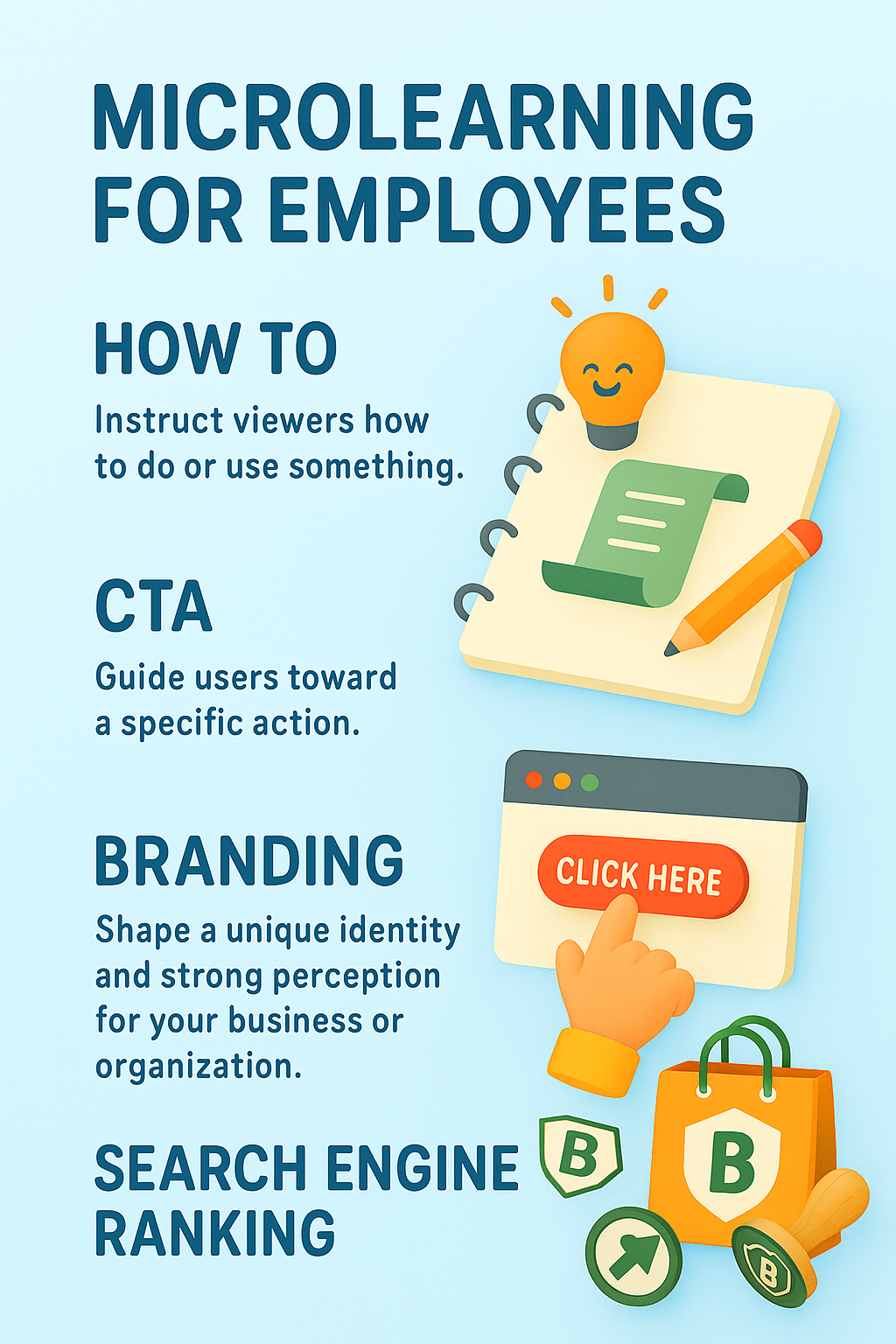 Informative graphic illustrating the concept of microlearning for employees, featuring engaging visuals and a clear layout to guide training strategies.