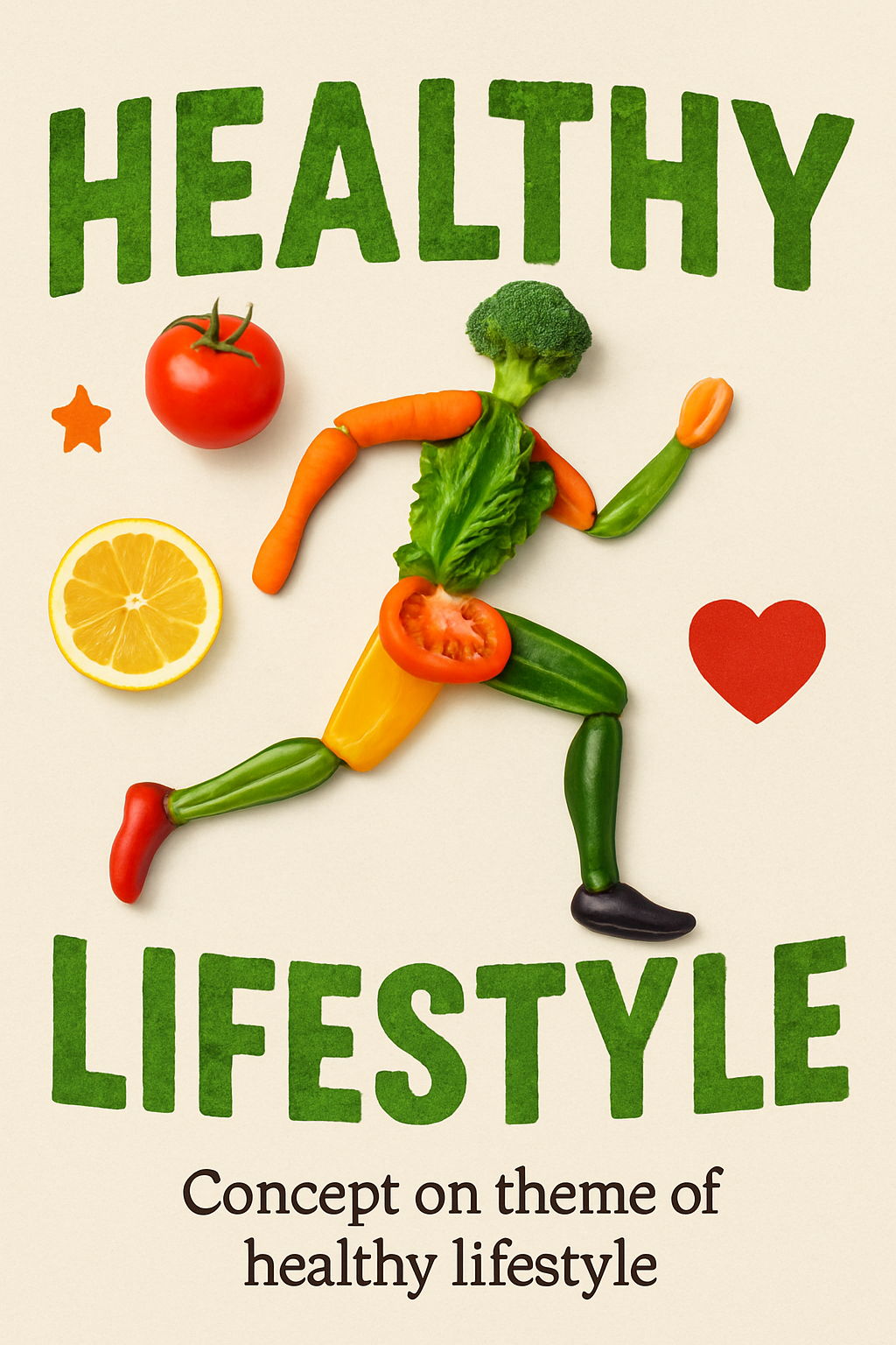 /Collection: /by davooda/Type: PNG/A vibrant and playful graphic showcasing the theme of a healthy lifestyle through a running figure made of vegetables. Ideal for health and wellness campaigns.