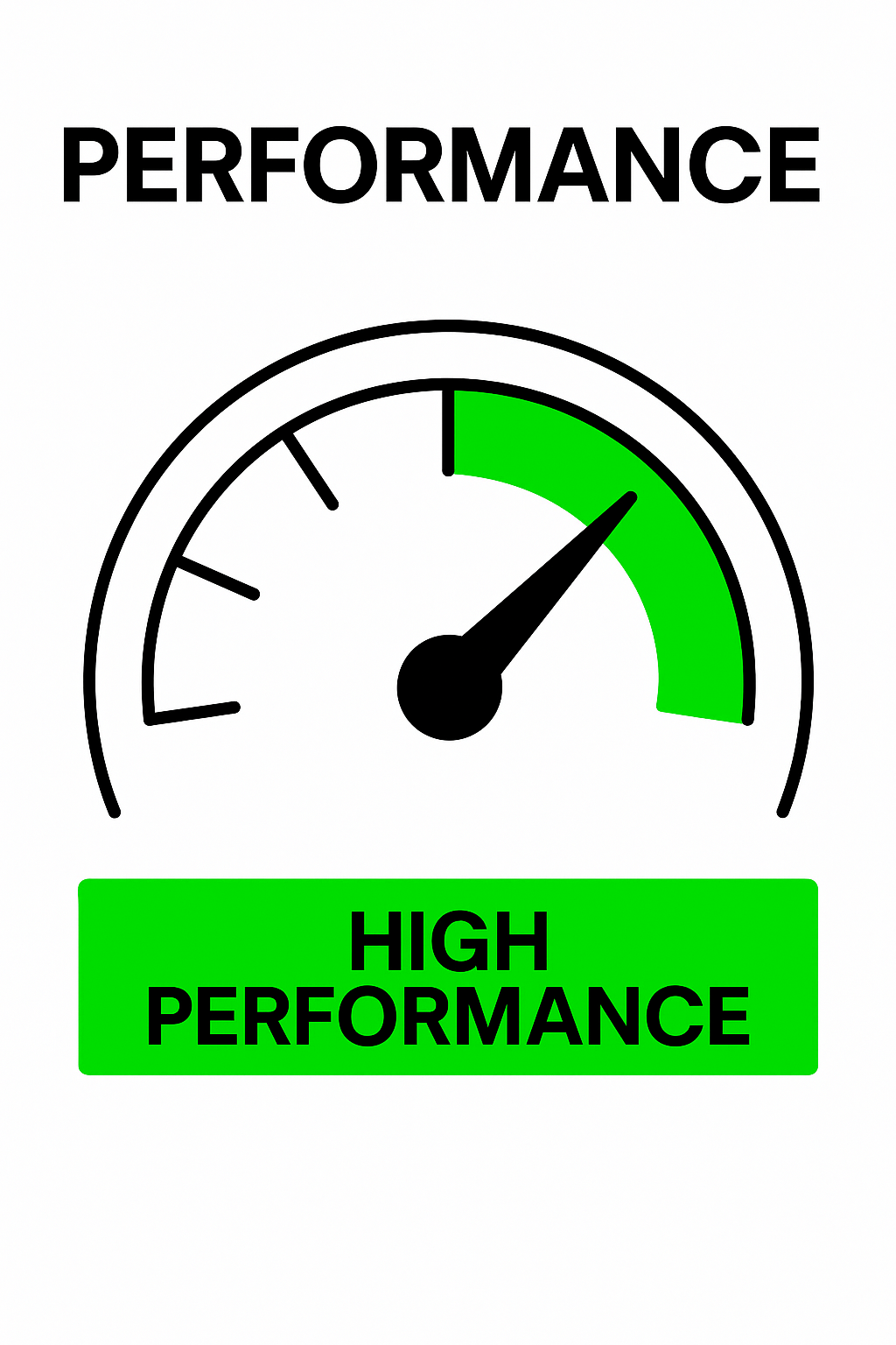 /Collection: /by davooda/Type: PNG/Simple and modern graphic featuring a performance gauge with an emphasis on high performance. Ideal for presentations and marketing materials focused on efficiency.