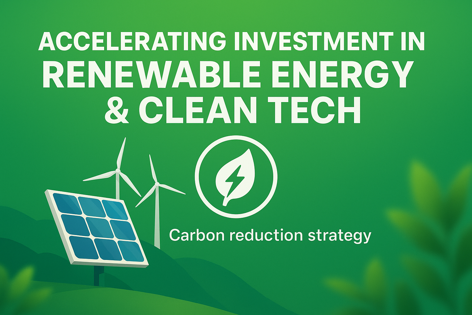 Vibrant promotional graphic highlighting investment in renewable energy and clean technology, ideal for environmental campaigns and sustainability initiatives.