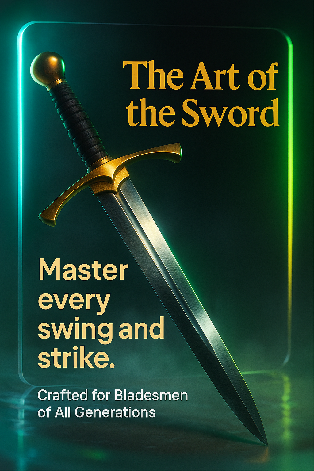 Dynamic 3D Sword Illustration with Bold Design Elements
