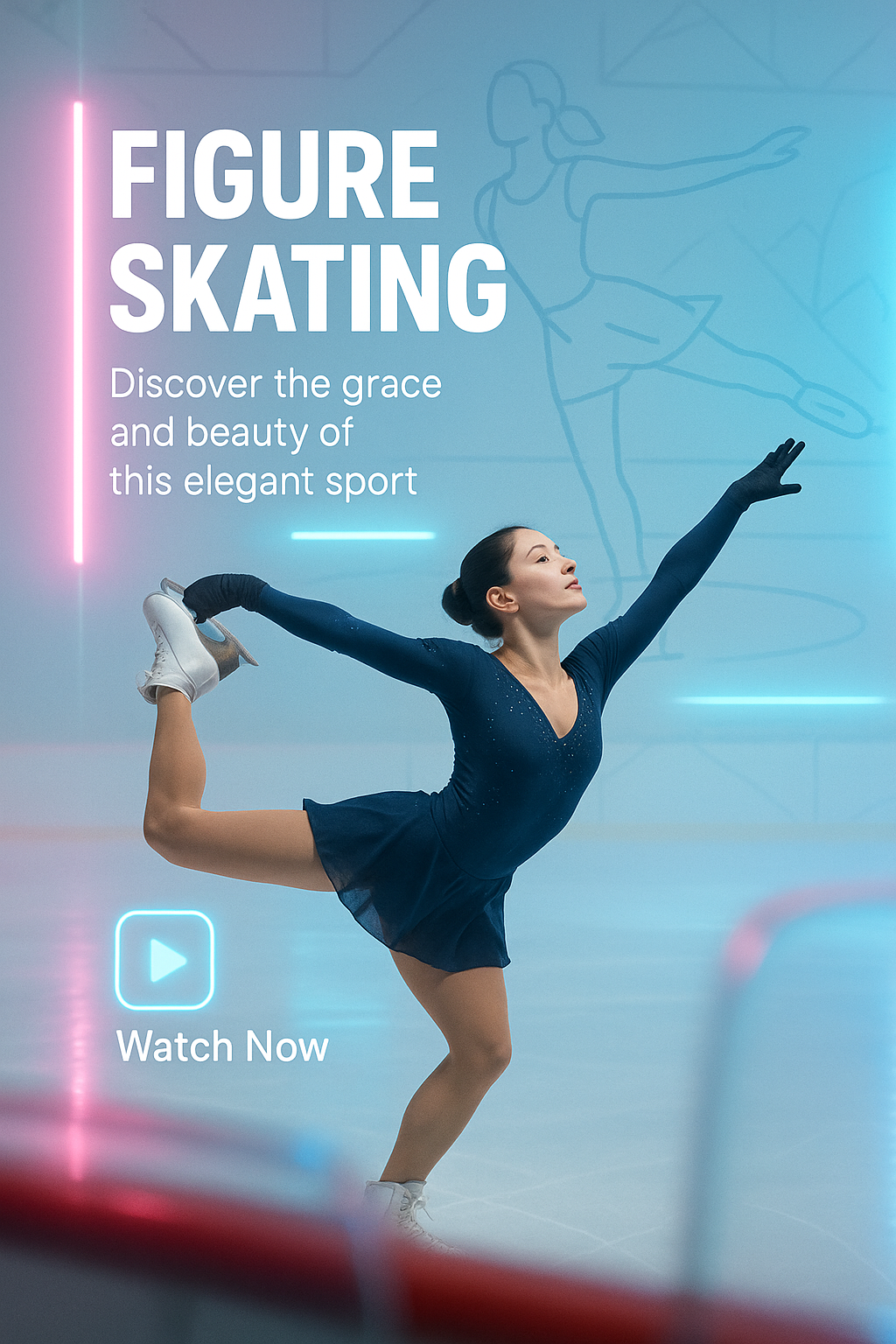 Engaging promotional image highlighting the elegance of figure skating with a graceful skater in motion, designed for social media or video content.