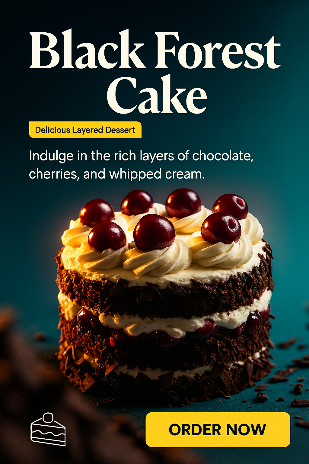 Promotional Dessert Graphic Featuring Black Forest Cake