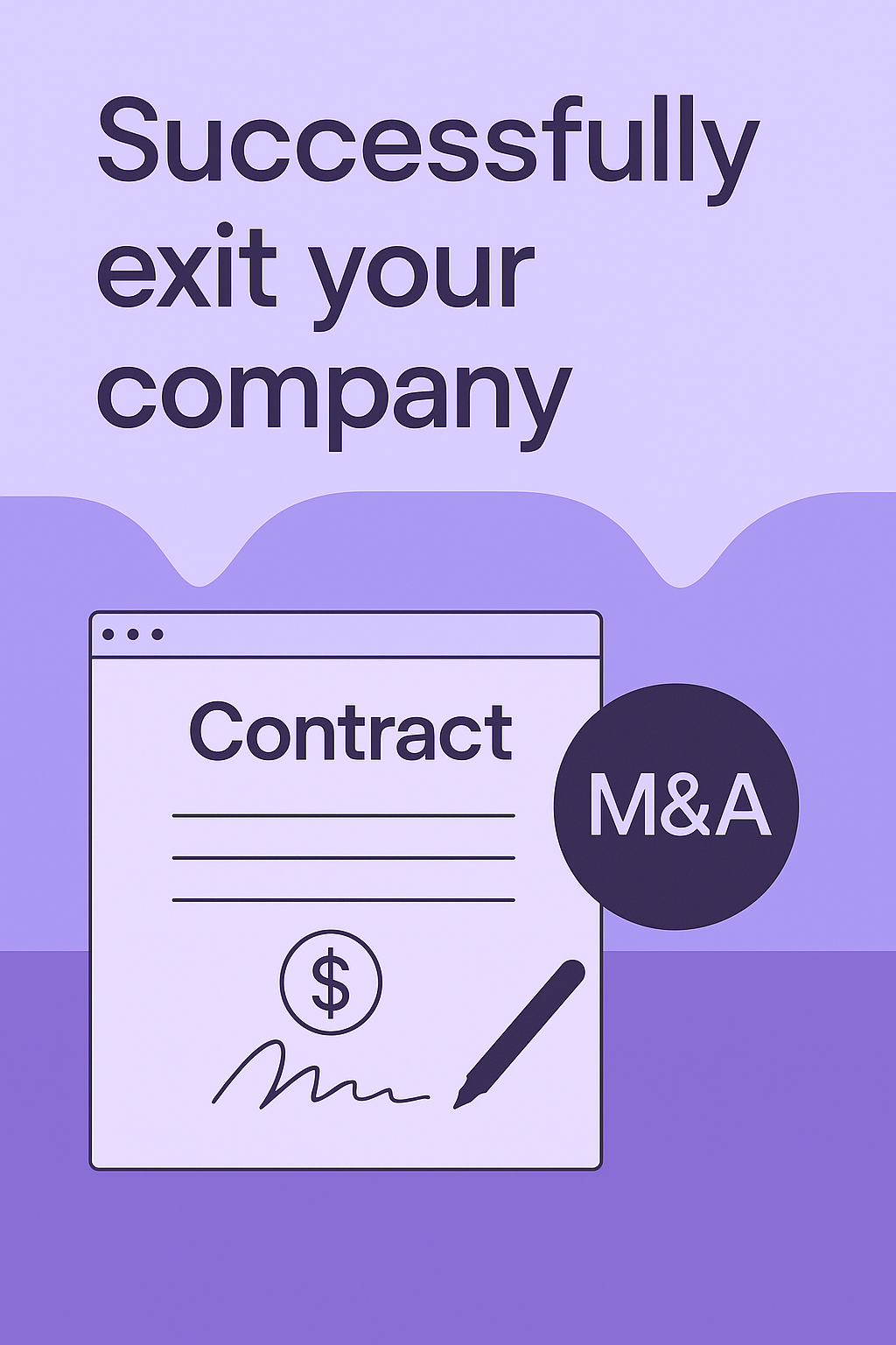 /Collection: /by davooda/Type: PNG/Informative graphic illustrating the process of exiting a company, featuring a contract design and modern aesthetic. Ideal for business presentations and educational materials.