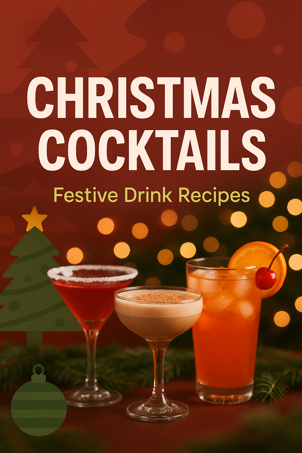 /Collection: /by davooda/Type: PNG/Vibrant graphic showcasing a selection of festive cocktails, perfect for holiday celebrations. This visually appealing design uses warm colors and holiday-themed elements, ideal for social media posts or recipe blogs.