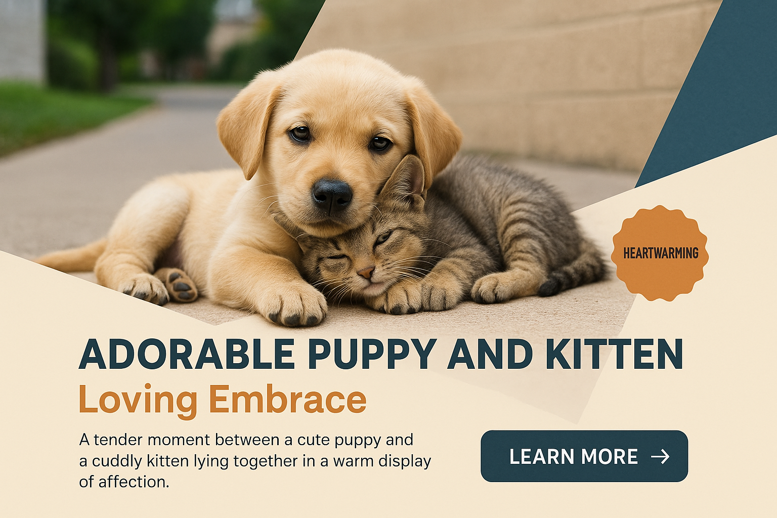 Heartwarming Moment of Puppy and Kitten in Loving Embrace