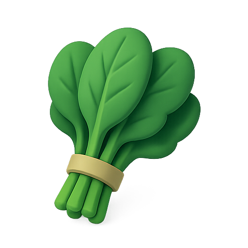 Vibrant 3D illustration of a bunch of fresh spinach leaves, featuring a smooth design ideal for food-related graphics, health blogs, or culinary content.