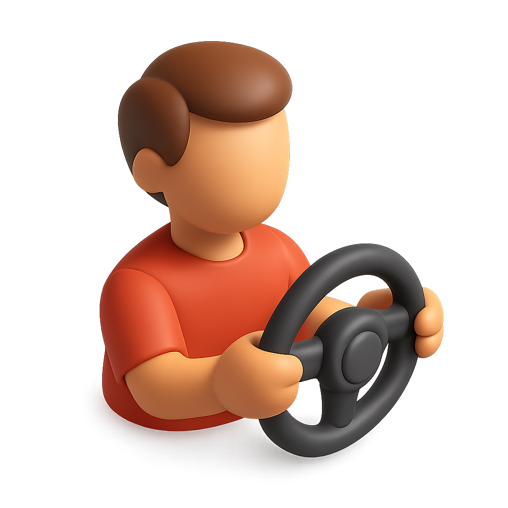 Stylized 3D Driver Icon with Steering Wheel