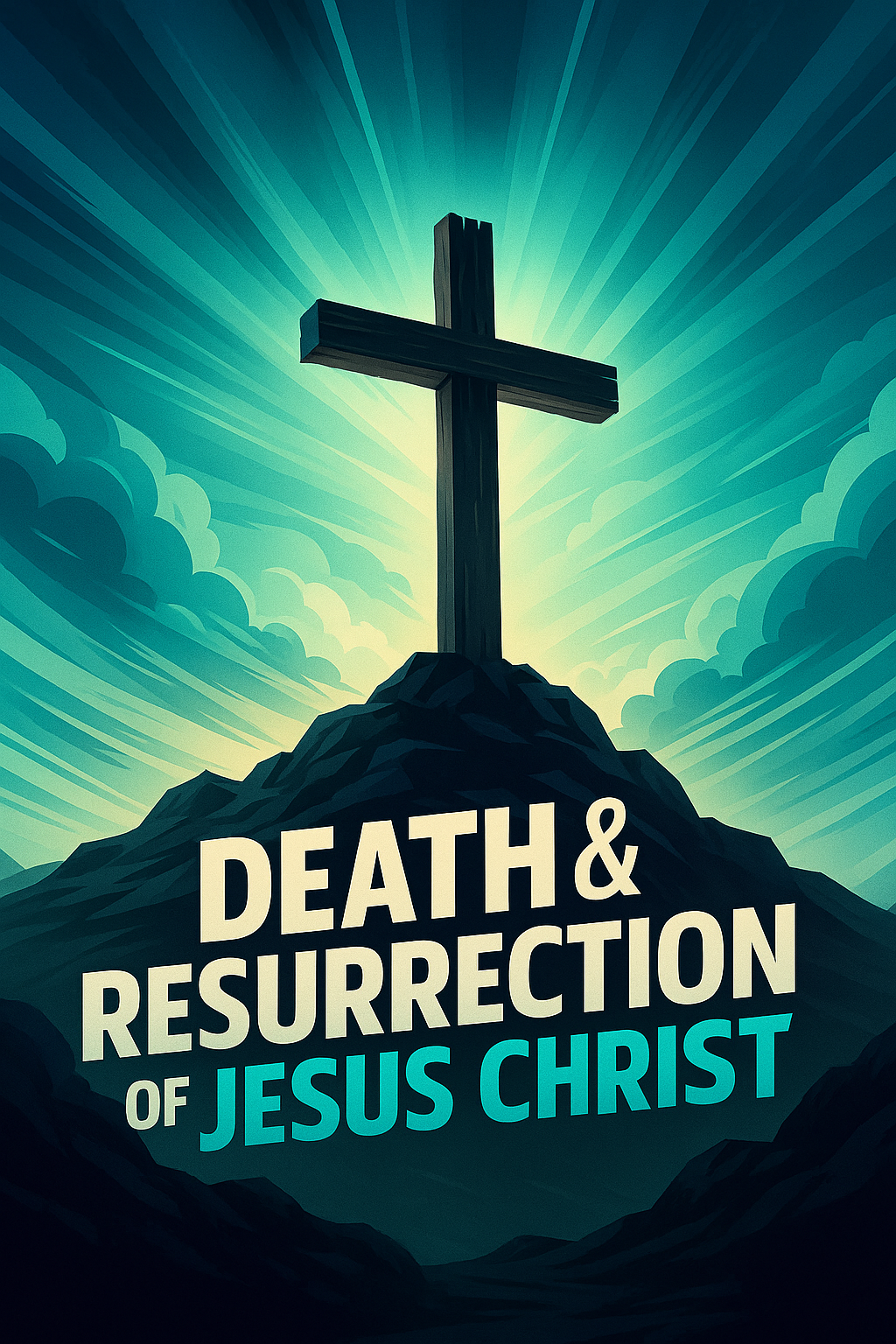 /Collection: /by davooda/Type: PNG/A striking 3D illustration of a cross atop Golgotha Hill, illuminated by a dramatic sky with rays of light. The design features dynamic lines and a balanced composition, emphasizing the theme of resurrection.