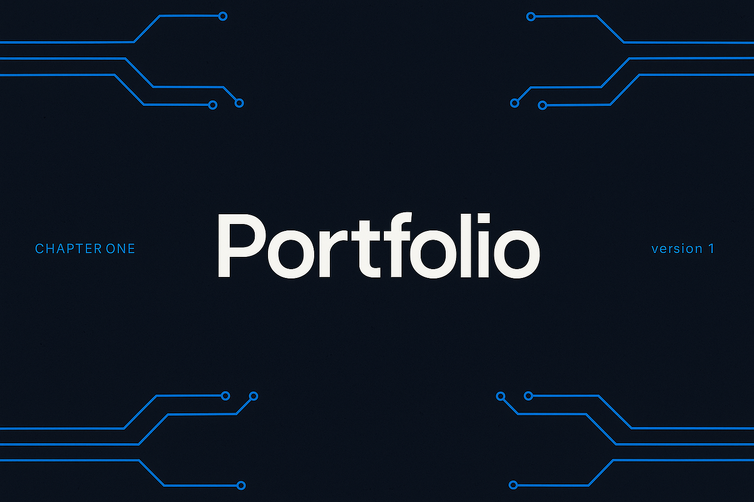 /Collection: /by davooda/Type: PNG/A sleek, modern portfolio cover featuring a dark background and blue circuit patterns. The bold text highlights 'Portfolio' along with chapter and version details.