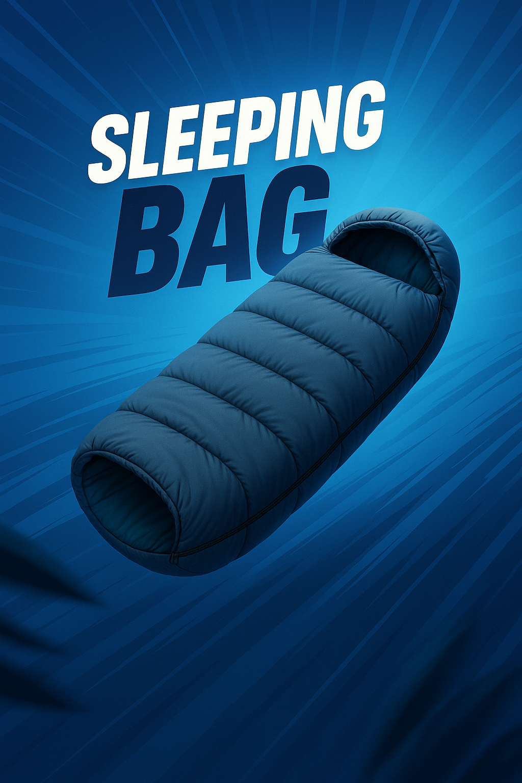 /Collection: /by davooda/Type: PNG/An eye-catching 3D illustration of a sleeping bag set against a vibrant blue background. Dynamic lines radiate from the center, enhancing the energetic feel of the image.